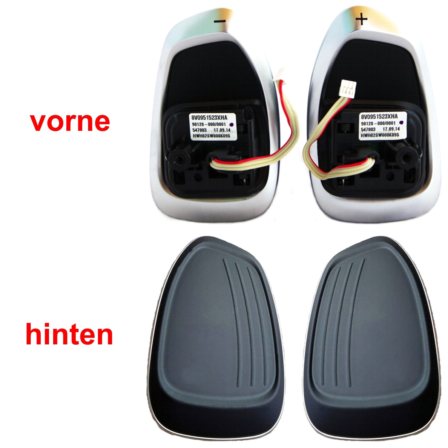 Ein echter Hingucker in jedem Innenraum in einer top Qualität zu einem Hammer Preis. Die Schaltwippenverlängerungen sind aus hochwertigem Aluminium und werden, mittels der integrierten Schrauben, auf die originalen Schaltwippen geklemmt. Sie halten sehr gut, sind aber auch ohne Probleme rückstandslos wieder entfernbar.